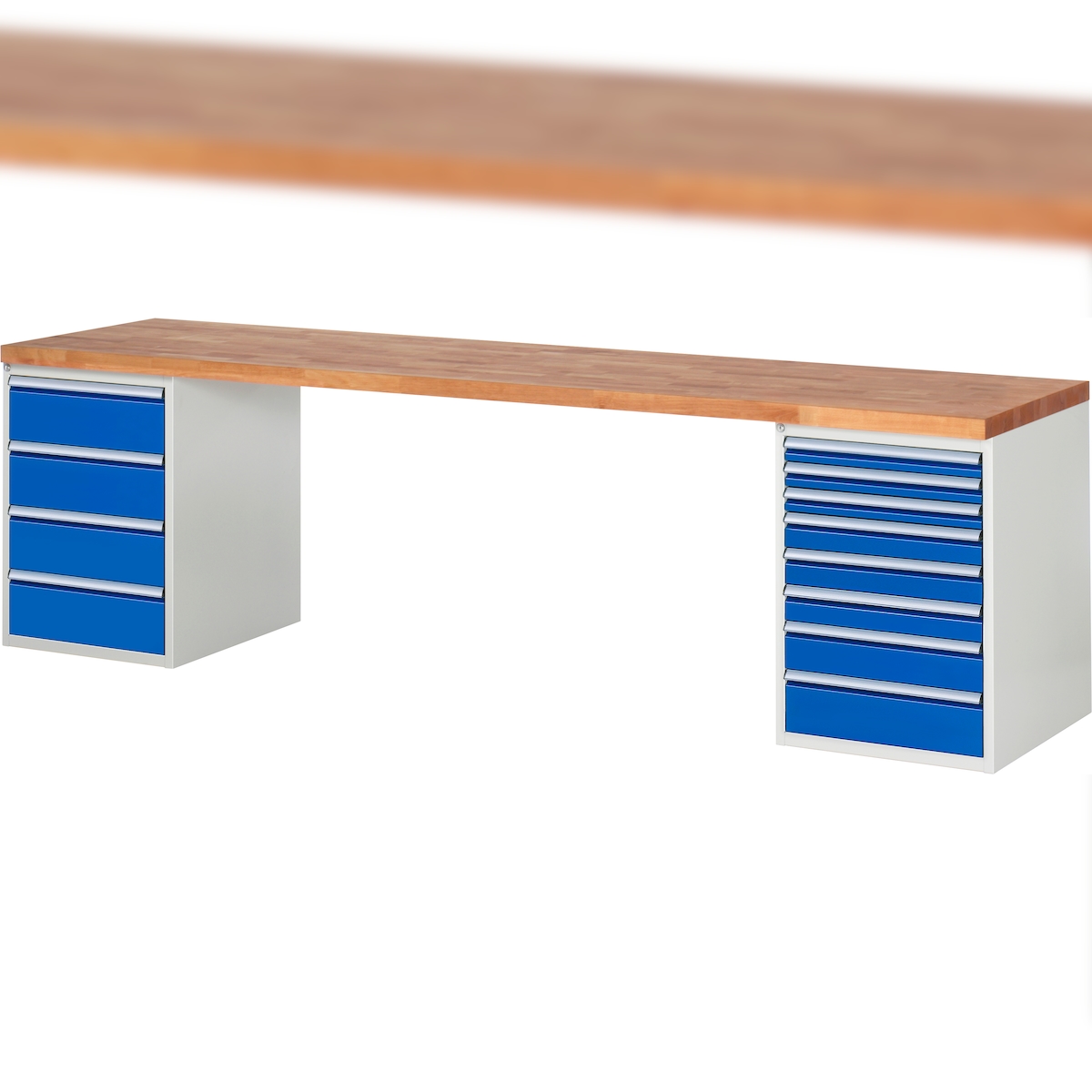 PROREGAL Werkbank Serie 7000 - Modell 7511 | HxBxT 84x250x90cm | 10x Schublade + 1x Schrank | Schubladenmaße 2x60 + 2x90 + 4x150 + 2x270mm