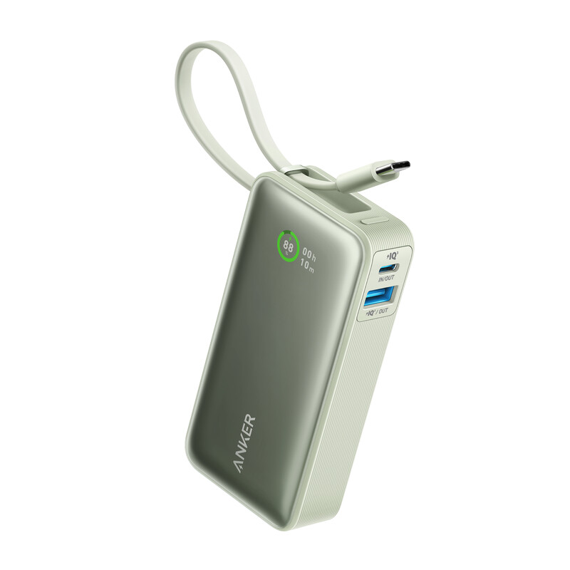 Anker Nano Batterie Externe (10 000 mAh, avec câble USB-C intégré, puissance maximale PD 30 W, 1 port USB-C & 1 port USB-A, compatible avec iPhone 16 Pro Max/15/14/13/12, MacBook, séries Galaxy (Samsung), iPad, AirPods)
