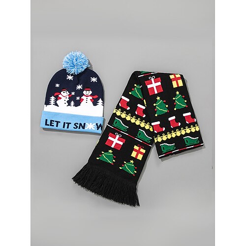 Set di cappello e sciarpa natalizi da donna in maglia, motivo renna, molteplici fantasie, comodo e festoso per feste e abbigliamento invernale