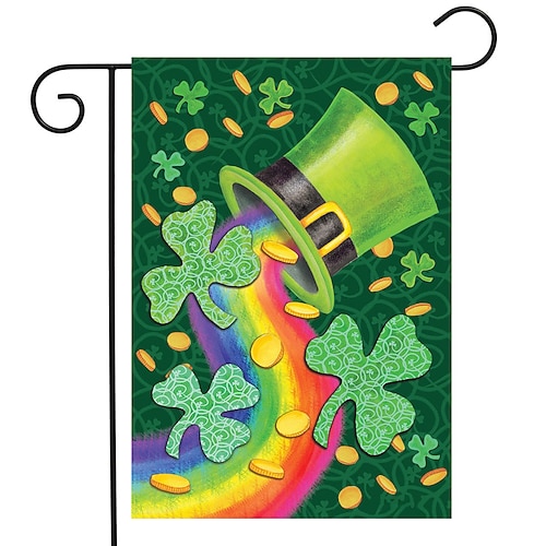 Striscione con bandiera per la festa di San Patrizio con trifoglio e cappello di San Patrizio per la decorazione di esterni, giardini, cortili, case, patio e prati.