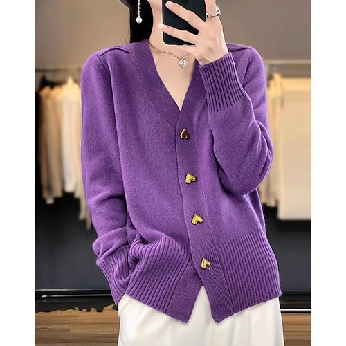 Felpa Maglione da abito Cardigan Giacca maglione A coste Maglia Abbottonare Tinta unica Elegante Abbigliamento Autunno Inverno Nero Blu marino scuro XS S M