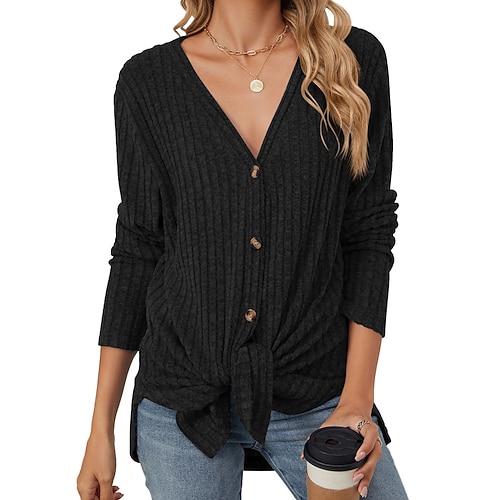 Per donna Cardigan Casual Morbido Tinta unica A Coste Colletto a Camicia Bottoni Lavorato a maglia Manica Lunga Top Regolari Maglia Quotidiano Ferie Uscire Nero Arancione Autunno