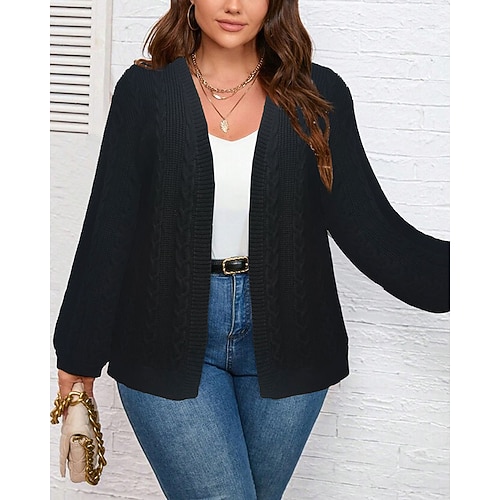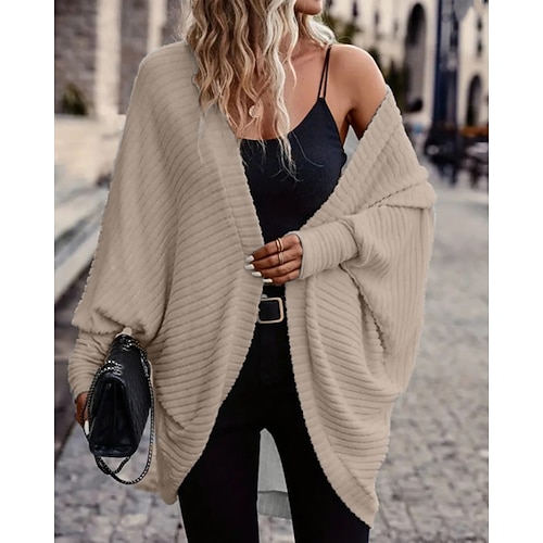 Per donna Felpa Cardigan Moda Streetwear Casual Tinta unica Aperto davanti Lavorato a maglia Manica Lunga Top Regolari Maglia Quotidiano Ferie Uscire Cachi Autunno Inverno