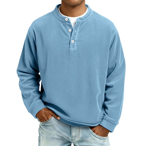 Per uomo Camicia di Velluto a Coste Maglia Henley Maglietta Manica Lunga Tinta unica Semplice Moda Designer Casual Cardigan con Bottoni Caldo Henley Casuale Quotidiano All'aperto Autunno Autunno