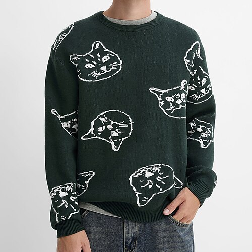 Per uomo Orso Fantasia Cartone 3D Maglione Maglieria Girocollo Casual Vacanza Casa Quotidiano Stampa 3D Lavoro a maglia Tenere al caldo Manica Lunga Primavera Autunno Inverno Nero Verde scuro