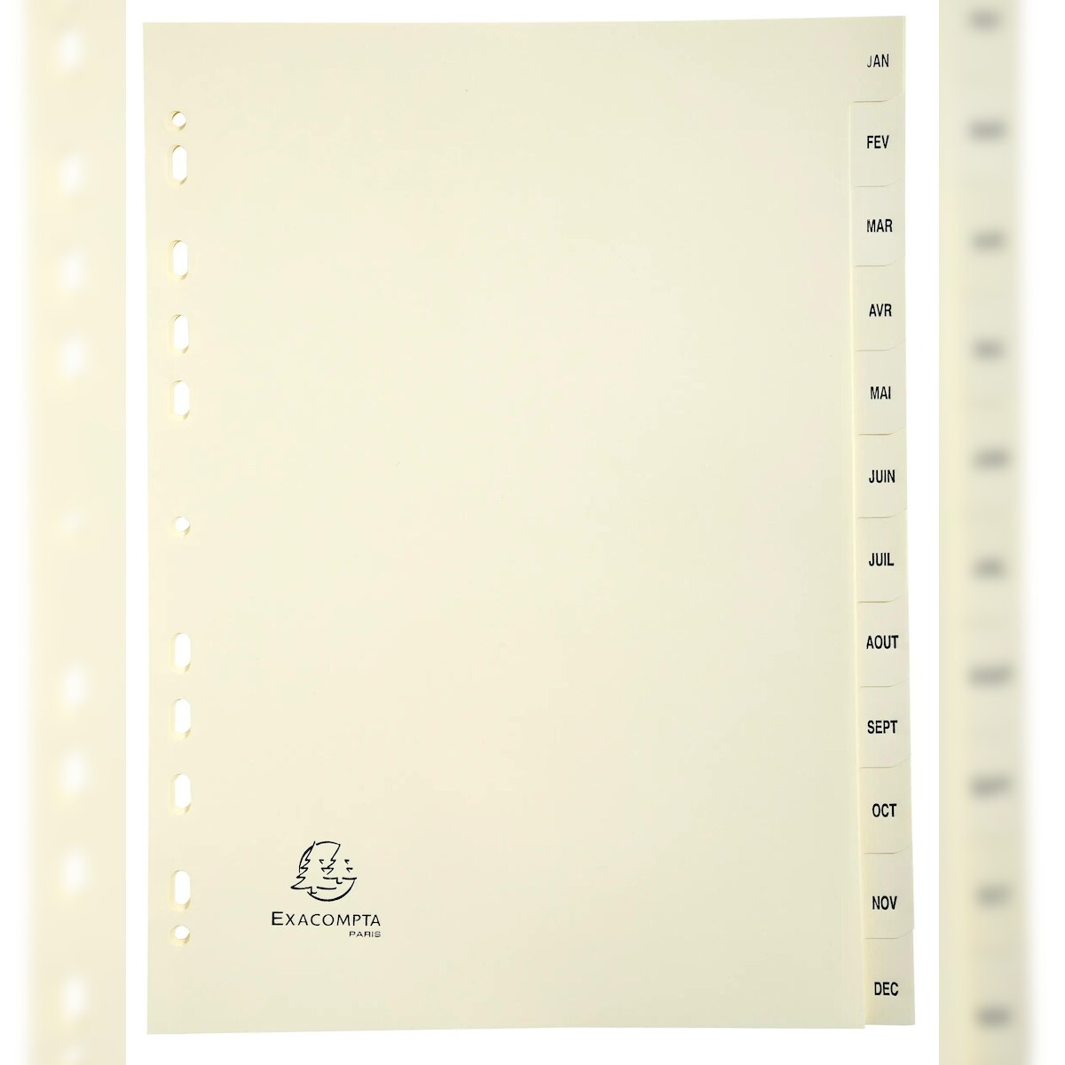 Exacompta 1212E 10x Register mit bedruckten Taben aus Karton 155g/qm, 12 Positionen Taben Ja.-Dez., für Format DIN A4 - Elfenbein