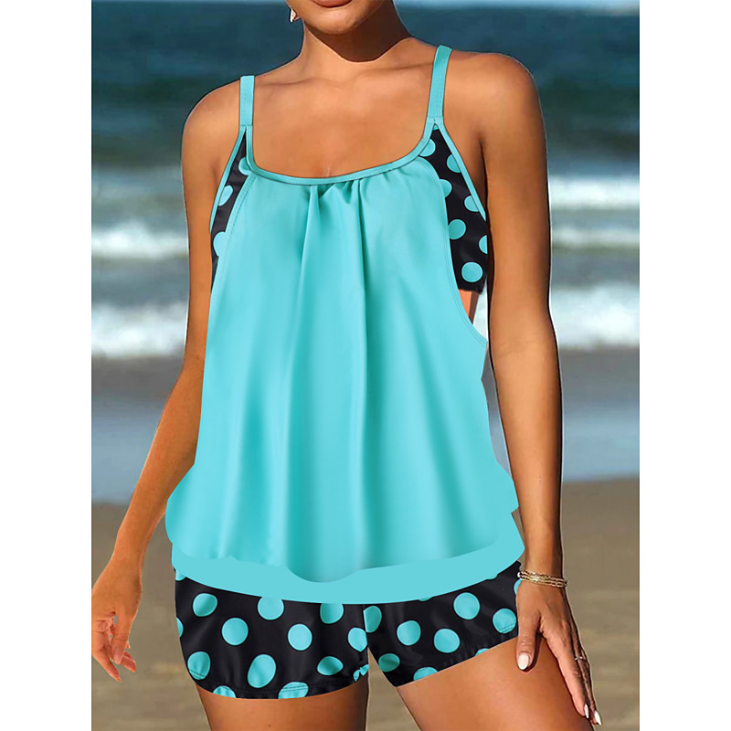 Women's Tankini 2 Piece Swimsuit Shorts Tummy Control High Waist Slim Backless Vacation Beach Wear Polka Dot U Neck Sleeveless Bathing Suits