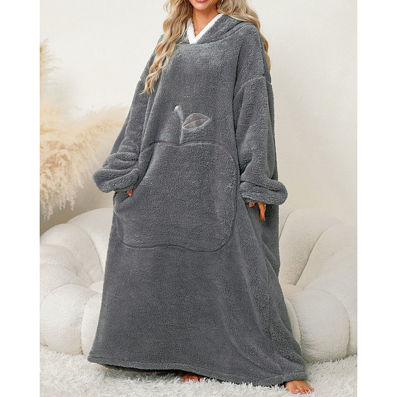 Women's Loungewear Nightgown Onesie Flannel Warm Fashion Wearable Blanket Hoodie Fruit Pocket Home Long Sleeve Crew Neck Red Khaki Dark Blue Gray Fall Winter Tailored Fit