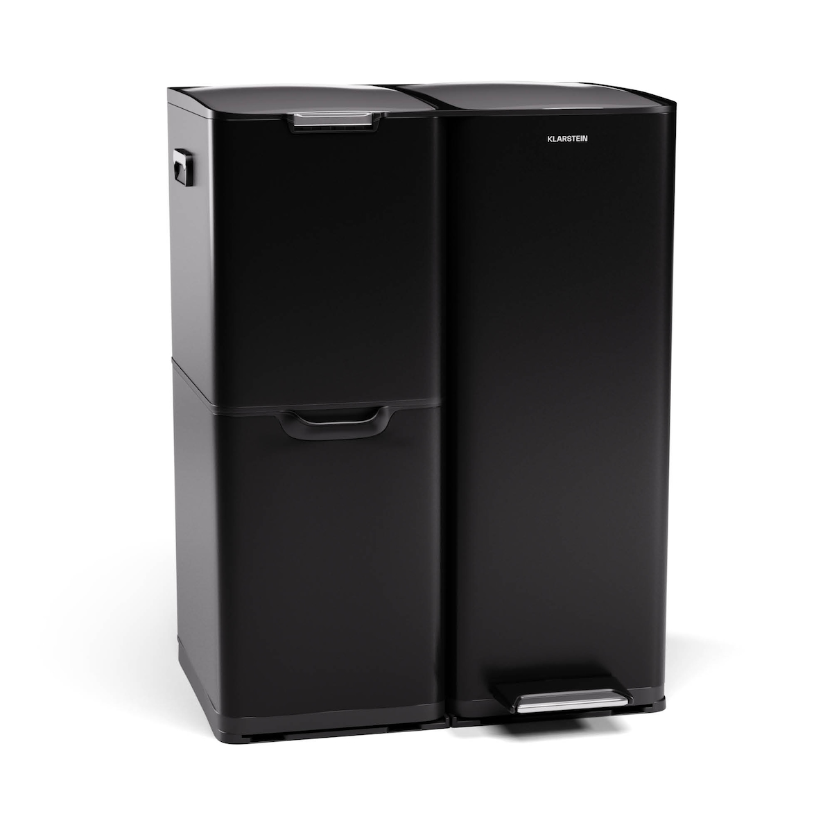 Klarstein Tiyo 3-in-1 Mülleimer 60 L entnehmbare Eimer Soft-Close Schwarz