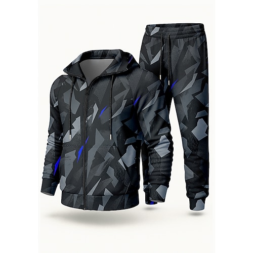 Per uomo Felpa con cappuccio Tuta da Ginnastica Set di Abbigliamento Sportivo Coulisse Con zip Geometria Completo Abbigliamento Autunno Blu Reale Grigio scuro Lavoro All'aperto Viaggio Leggero Di