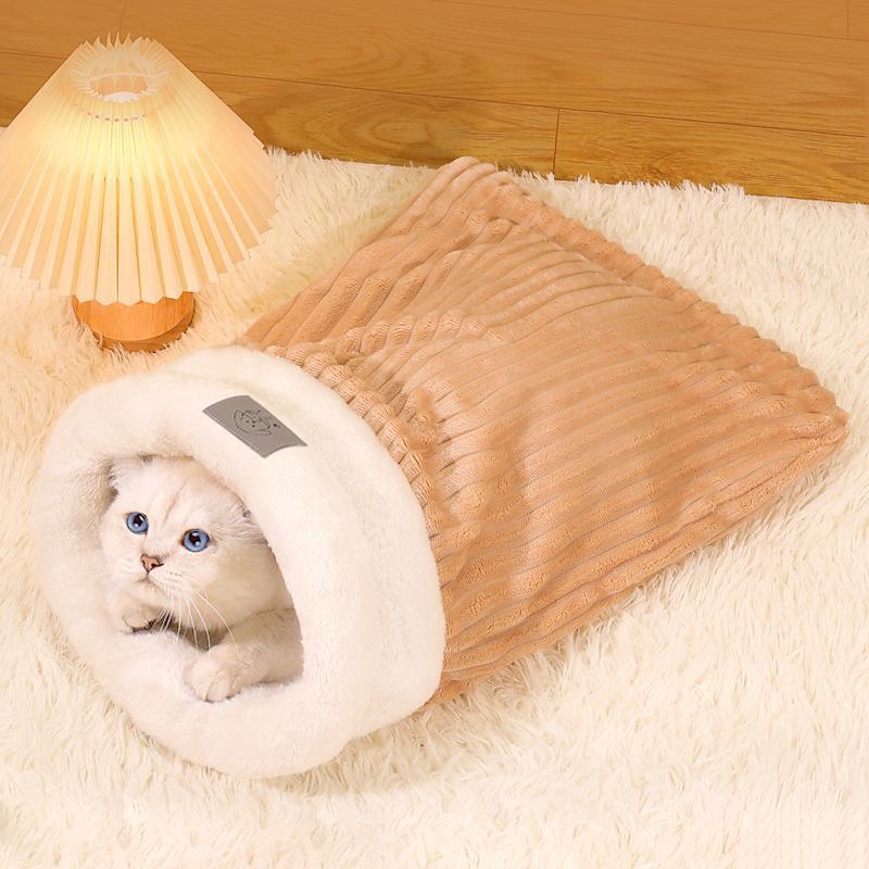 Cat Sleeping Bag Cat Sleeping Bag for Indoor Cats Cozy Winter Soft Plush Self Warm Kittens Indoor Sack 360Wrap Comfortable Pet Snuggle Sack for Cats up to 8kg/17.6lb