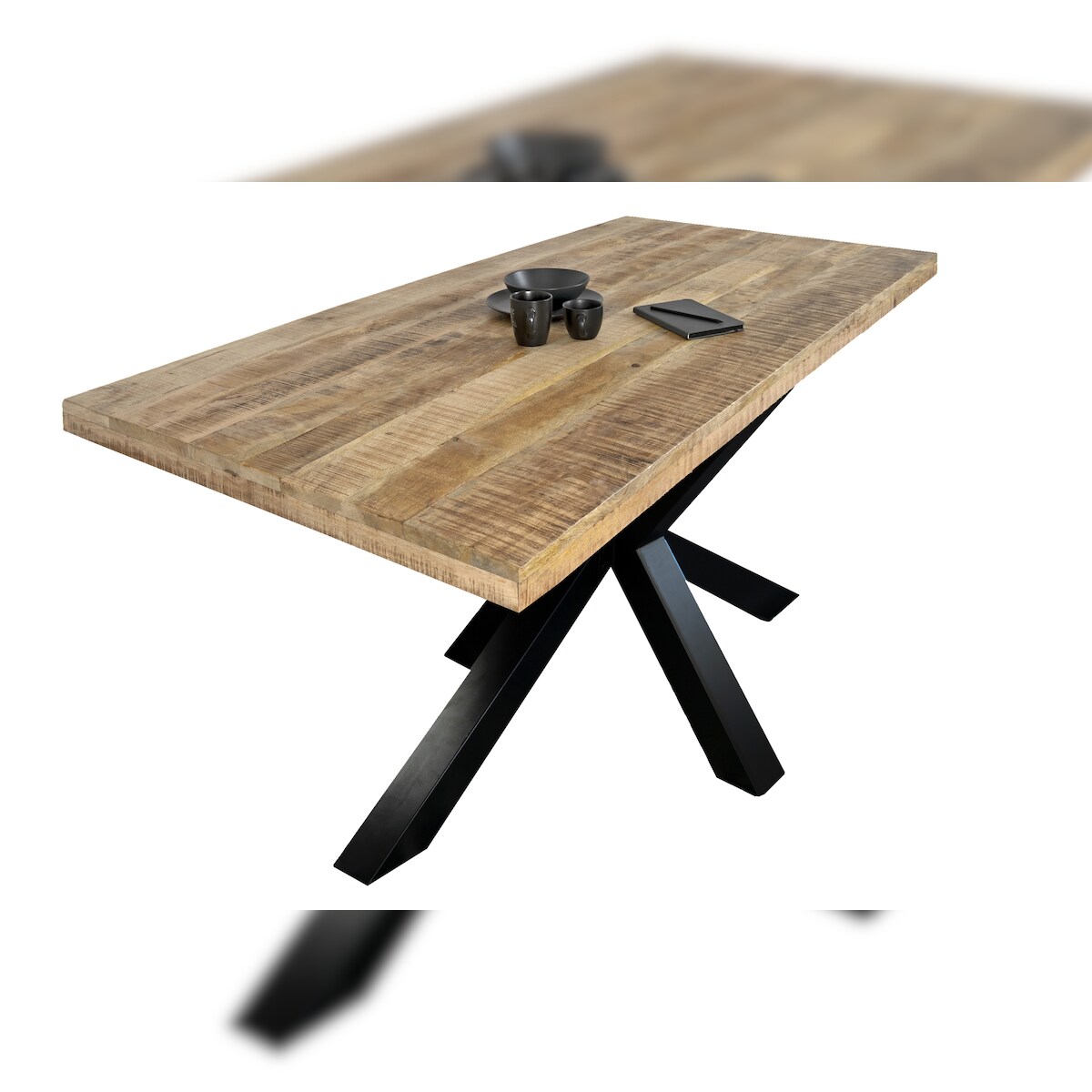 Möbelliebling Esstisch Mango Massiv naturfarben 260 x 100 cm gerade Kanten Spider-Gestell schwarz RIO