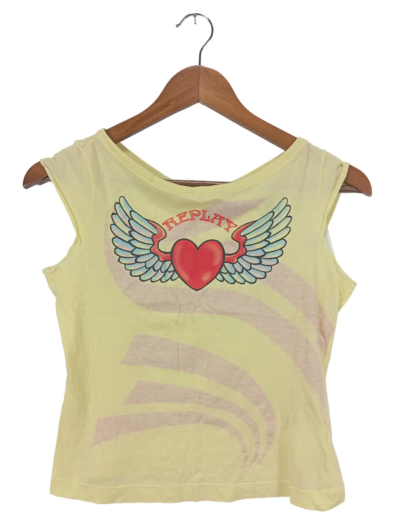 REPLAY Kinder T-Shirt S Gelb Flügelmotiv
