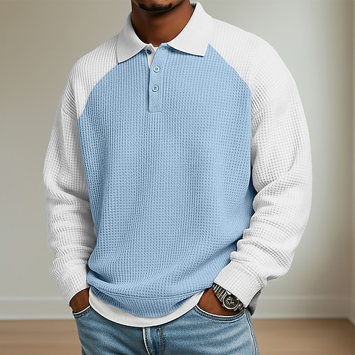Per uomo Magliette Polo a Nido d'Ape All'aperto Casual Bavero Manica Lunga Moda Moderno Tinta unica Lavorato a maglia Primavera Autunno Tutte le stagioni Vestibilità comoda Nero Blu marino Viola