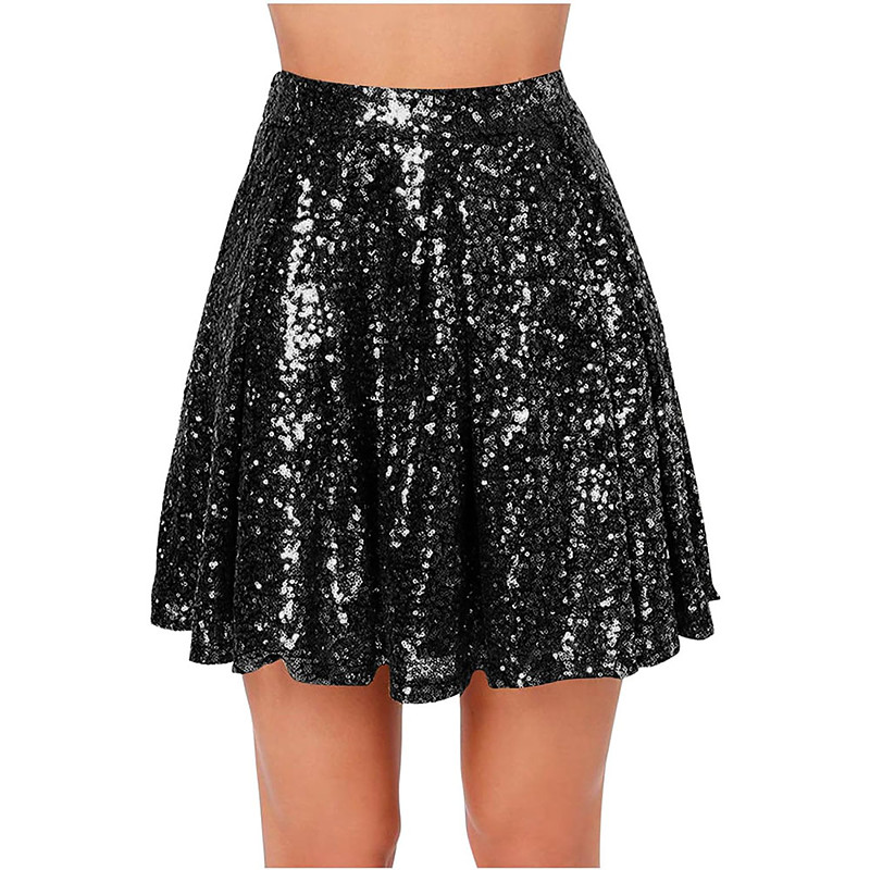 Rio Carnival Samba Dancewear Womens Sequin Skirt Sparkly Stretchy High Waisted A-Line Flowy Swing Glitter Mini Skirts Brazil Festival Performance Costume