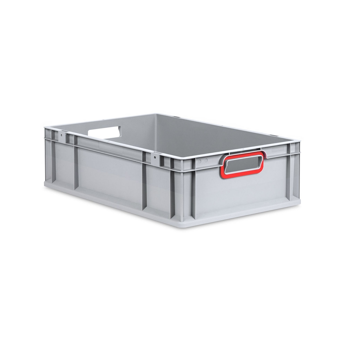 PROREGAL 5x Eurobox NextGen Color mit Scharnierdeckel & Verschlüssen | HxBxT 17x40x60cm | 34 Liter | Griffe rot offen | Glatter Boden
