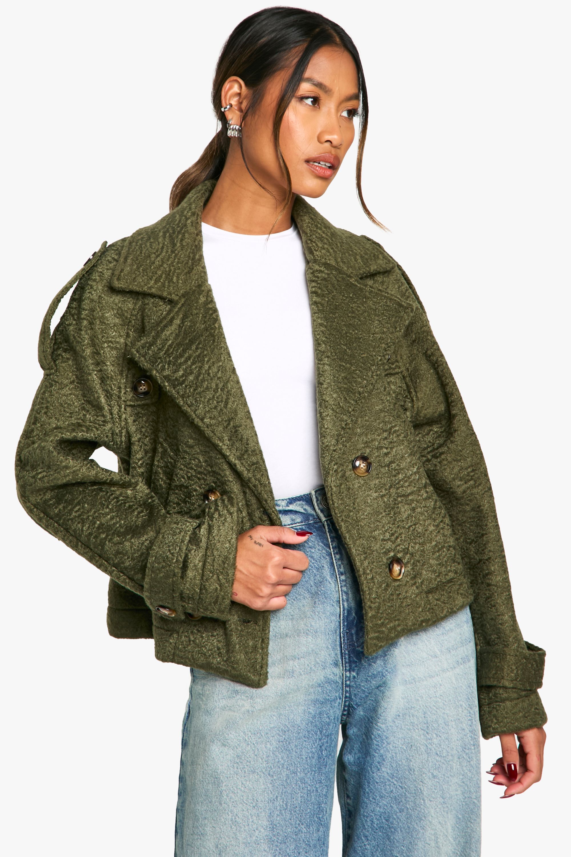 Boohoo Womens Suede Look Button Up Shacket - Khaki - Size 12 UK | Boohoo Sale | Discount Designer Brands