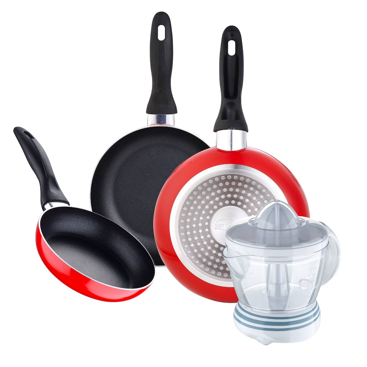 BERGNER - Set aus 3 Pfannen Ø16/Ø20/Ø24 cm aus gepresstem Aluminium, geeignet für Induktion Navy Red Entsafter NATURALLY 40 W, 1,2 L
