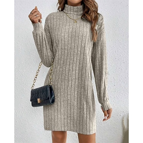 Per donna Mini Abito Abito in maglia Vestito Casual Moda Moderno Quotidiano Data Weekend Vestibilità regolare Semplice Manica Lunga Collo Alto Nero Vino Grigio chiaro Albicocca Autunno Inverno