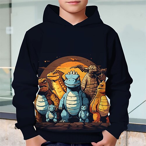 Jungen 3D Tiermotiv Dinosaurier Kapuzensweatshirt Langarm Frühling Herbst Mode Streetwear Kinder 4-12 Jahre Mit Kapuze Outdoor Lässig Täglich Normale Passform