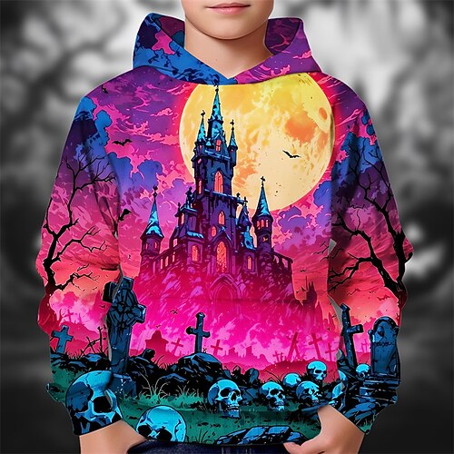 Halloween Jungen 3D Grafik Schädel Kapuzensweatshirt Langarm Frühling Herbst Mode Streetwear Kinder 4-12 Jahre Mit Kapuze Outdoor Lässig Täglich Normale Passform