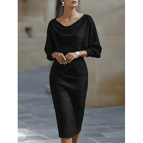 Per donna Abito Midi Abito da lavoro Tubino Elegante Moda Moderno Ufficio Taglia piccola Semplice Manica Lunga Scollo a Cascata Nero Bianco Blu marino Grigio Primavera Autunno