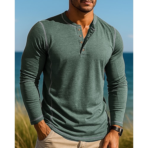 Per uomo Felpa casual Manica Lunga Colletto Henley Top Esterno Caldo Inverno Poliestere Nero Bianco Verde militare Tennis Golf Corsa