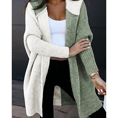 Per donna Felpa Cardigan Streetwear Casual Blocco di colori Con Cappuccio Patchwork Lavorato a maglia Manica Lunga Top lunghi Maglia Quotidiano Ferie Uscire Bianco / Nero Nero Autunno Inverno