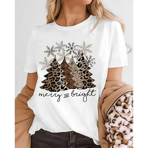 Natale Per donna Blusa Grafico Babbo Natale Albero di Natale Elegante Vintage Tropicale Manica Corta Girocollo Top Regolari Lavoro Quotidiano Ferie Arricciato Patchwork Stampato Bianco e nero Nero