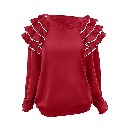 Per donna Blusa Top Eleganti Semplice Elegante Vintage Carino Manica Lunga Girocollo Top Regolari Lavoro Quotidiano Ferie Arricciato Volant Patchwork Verde primavera Nero Bianco Verde militare Rosso