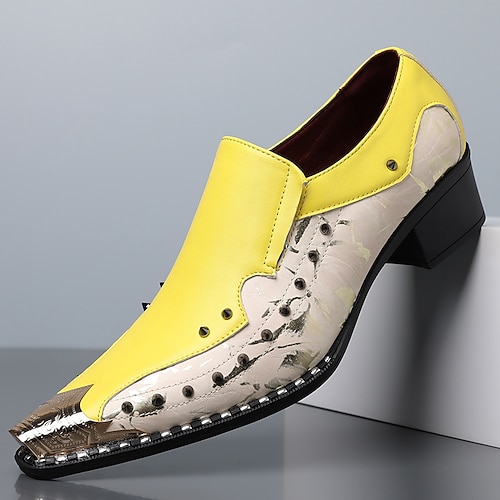 scarpe slip-on da uomo in similpelle – colore giallo e nero con dettagli a spillo, calzature alla moda per audaci celebrazioni nuziali e occasioni speciali