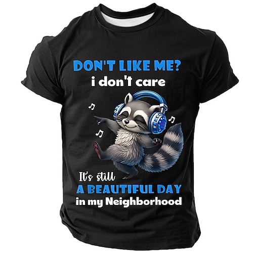 Wenn du mich nicht magst, ist mir das egal, es ist trotzdem ein schöner Tag in meiner Nachbarschaft. Lustiges Waschbär-Motiv, Herren-T-Shirt in Salbeigrün mit kurzen Ärmeln, Größen S, M, L, XL, XXL,