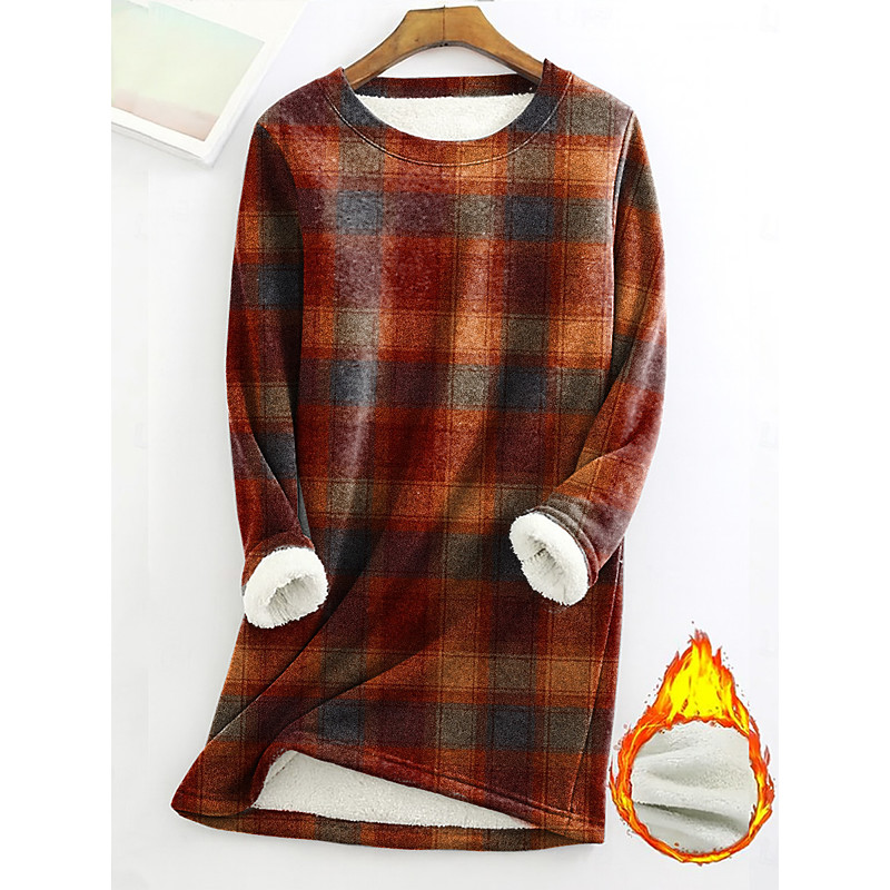 Damen Übergröße Tunika Hütte Plaid Täglich Langarm Hemdkragen Casual Festtage Knopf Schwarz Rosa Blau Ganzjährig