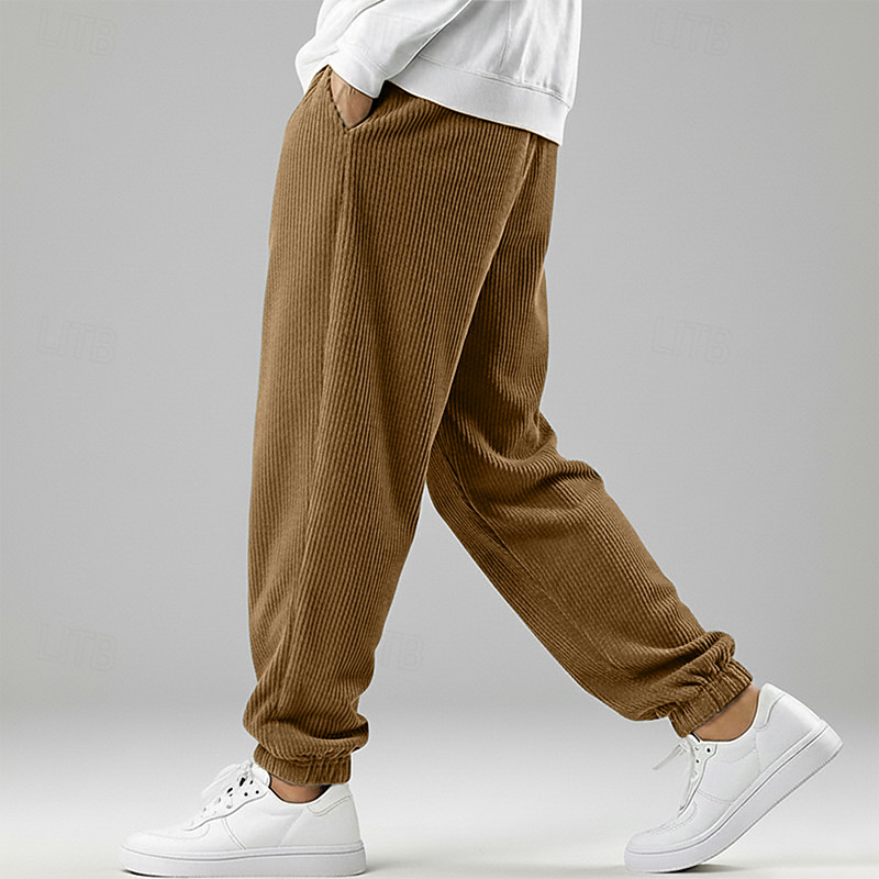 Men's Sweatpants Joggers Trousers Corduroy Pants Baggy Pants Drawstring Pleated Elastic Cuff Plain Comfort Breathable Full Length Outdoor Casual Daily Vacation Sports Blue Black Micro-elastic