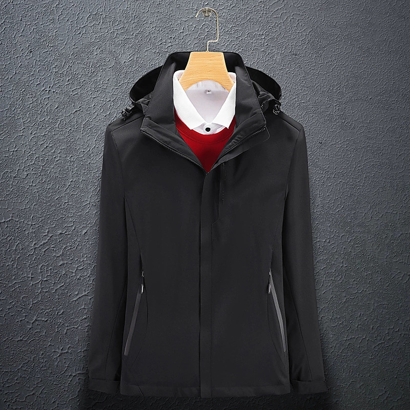Men's Softshell Jacket Sport Coat Hiking Jacket Windcheater Jacket Sports Outdoor Casual 3 In 1 Waterproof Zipper Pocket Fall Winter Solid Color Active Hooded Short Black White Dark Red Jacket