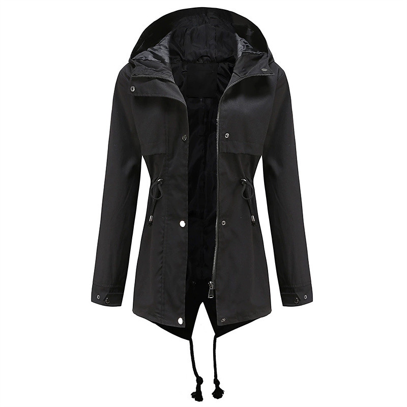 Women's Trench Coat Waterproof Rain Jackets Rain Coats Waterproof Windproof Zipper Pocket Fashion Outdoor Plain Going out Weekend Zipper Regular Hooded Regular Fit Long Sleeve Outerwear Black White