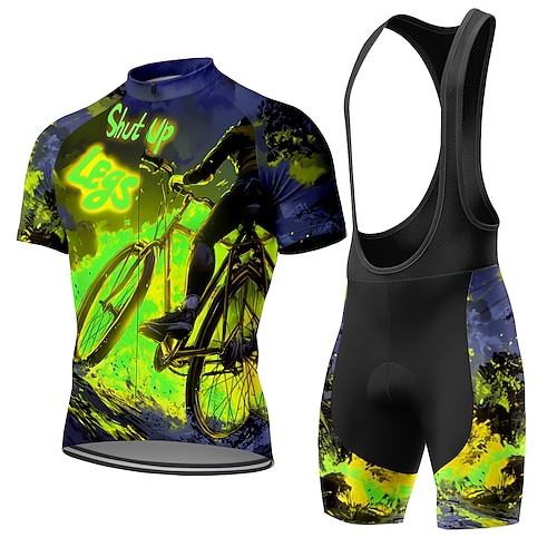 Per uomo Maglia da Ciclismo Maglia da ciclismo con pantaloncini con bretelle Manica Corta Mountain Bike MTB Ciclismo su strada Blu Rosso Viola Cartoni animati Vintage Bicicletta Resistente ai Raggi