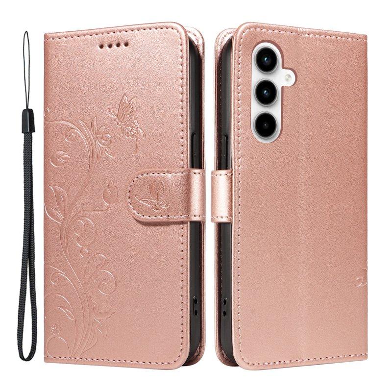 Samsung Galaxy A35 5G Fodral PU Läder Blommönster Ställ - Roséguld