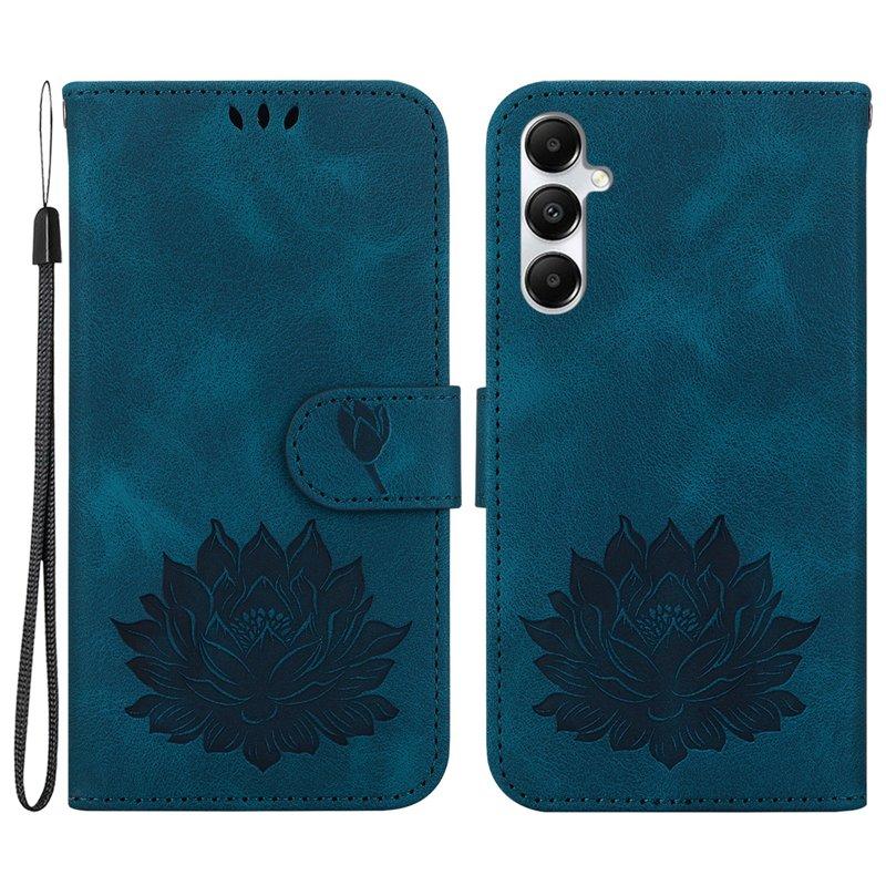 Samsung Galaxy A35 5G Skal Lotusmönster Äkta Läder - Blå