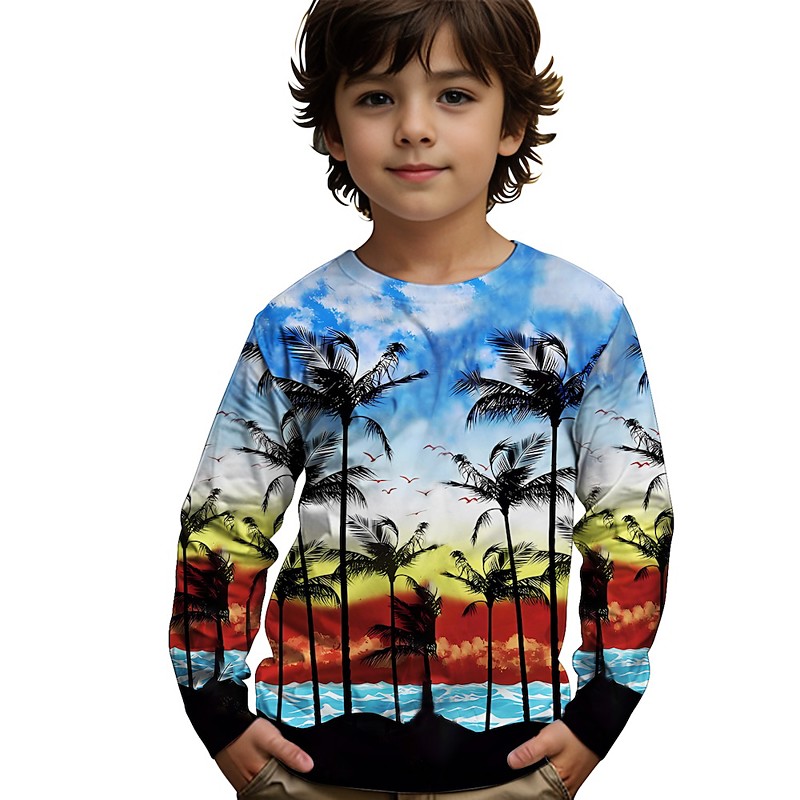 Boys' 3D Graphic Coconut Tree T shirt Tee Long Sleeve Summer Spring Fashion Basic Kids 4-12 Years Crew Neck Outdoor Casual Daily Regular Fit