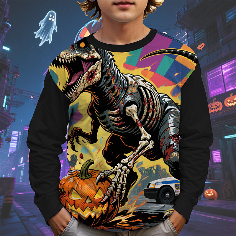 Halloween Boys' 3D Cartoon Pumpkin Dinosaur T shirt Tee Long Sleeve Spring Fall Fashion Basic Kids 4-12 Years Crew Neck Outdoor Casual Daily Regular Fit