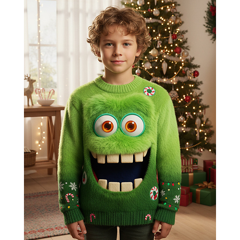 Christmas Boys' 3D Snowflake Elf Ugly Christmas Sweater Christmas Gift Sweater Long Sleeve 3D Print Fall Winter Fashion Party Kids 4-12 Years Crew Neck Outdoor Daily Regular Fit