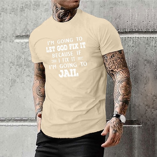 Maglietta grafica divertente da uomo a manica corta - Lascia che Dio risolva se lo risolvo io vado in prigione Citazione - Maglietta sarcastica sulla vita