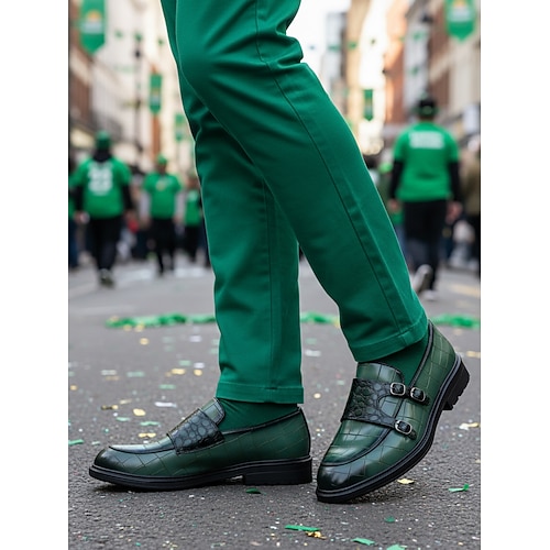 mocassini da uomo verdi con motivo coccodrillo, scarpe eleganti slip-on in similpelle con dettaglio fibbia, eleganti scarpe formali calzature casual da uomo, perfette per feste, eventi aziendali e