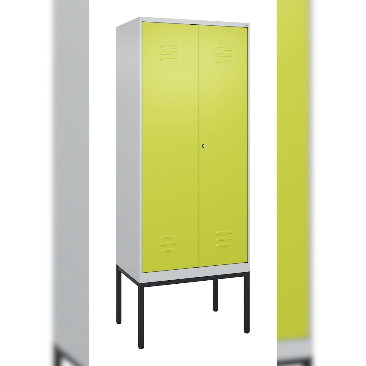 C+P Spind Classic PLUS, Füßen, 4 Abteile, HxBxT 195x60x50cm, Sicherheitsdrehriegel, Hellgrau/Clowngrün von PROREGAL
