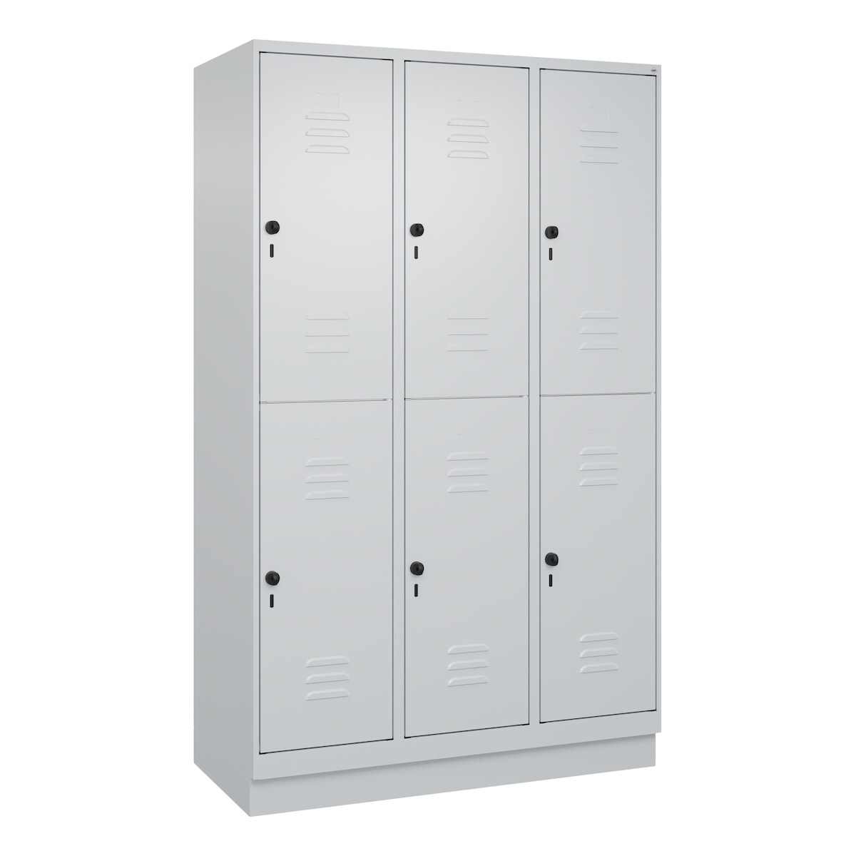 C+P Spind Classic PLUS, Sockel, 6 Abteile, HxBxT 195x120x50cm, Sicherheitsdrehriegel, Hellgrau/Hellgrau von PROREGAL