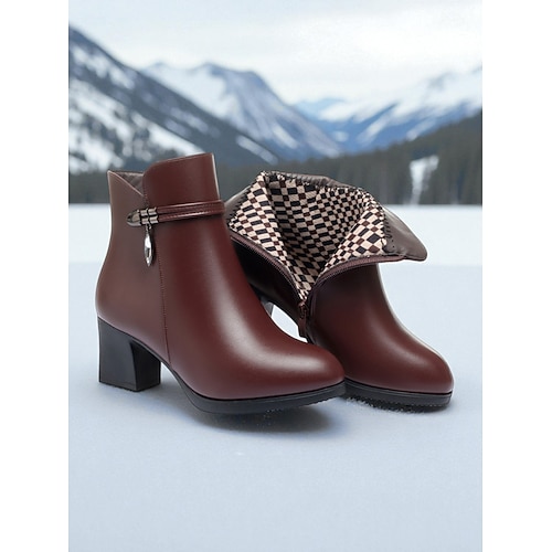 Per donna Stivali Stivali Morbidi Taglie Forti Stivaletti All'aperto Quotidiano Tronchetti Lacci Tacco Alto Tacco grosso Punta Tonda Vintage Casual Stile Industriale Pelle PU PU Cerniera Nero Marrone