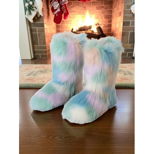 stivali da donna in pelliccia sintetica verde - stile natalizio accogliente, perfetti per abiti da festa e celebrazioni festive