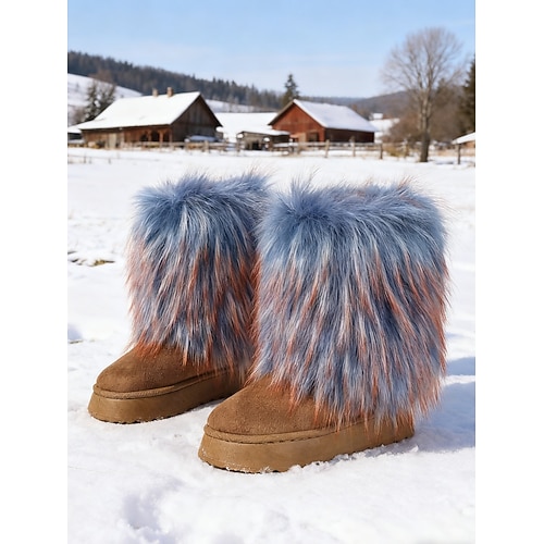 Per donna Stivali Stivali da Neve Quotidiano All'aperto Tronchetti Tacco basso Punta Tonda Moda Pelliccia Pelliccia Sintetica Mocassino Nero Bianco Marrone
