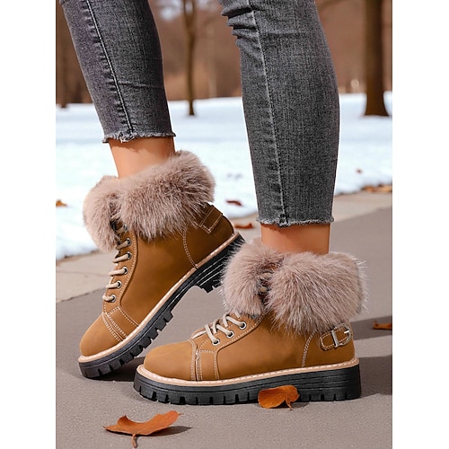 stivali da neve invernali da donna – scarpe da esterno impermeabili, calde, foderate in pelliccia, con lacci, per il freddo e le escursioni